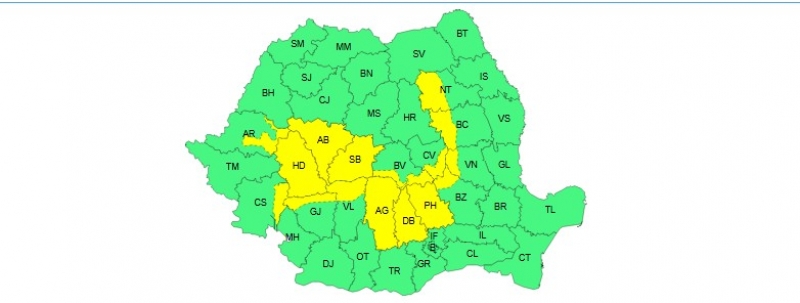 Codul galben intră în vigoare la ora 12:00 și expiră diseară, la ora 22:00.