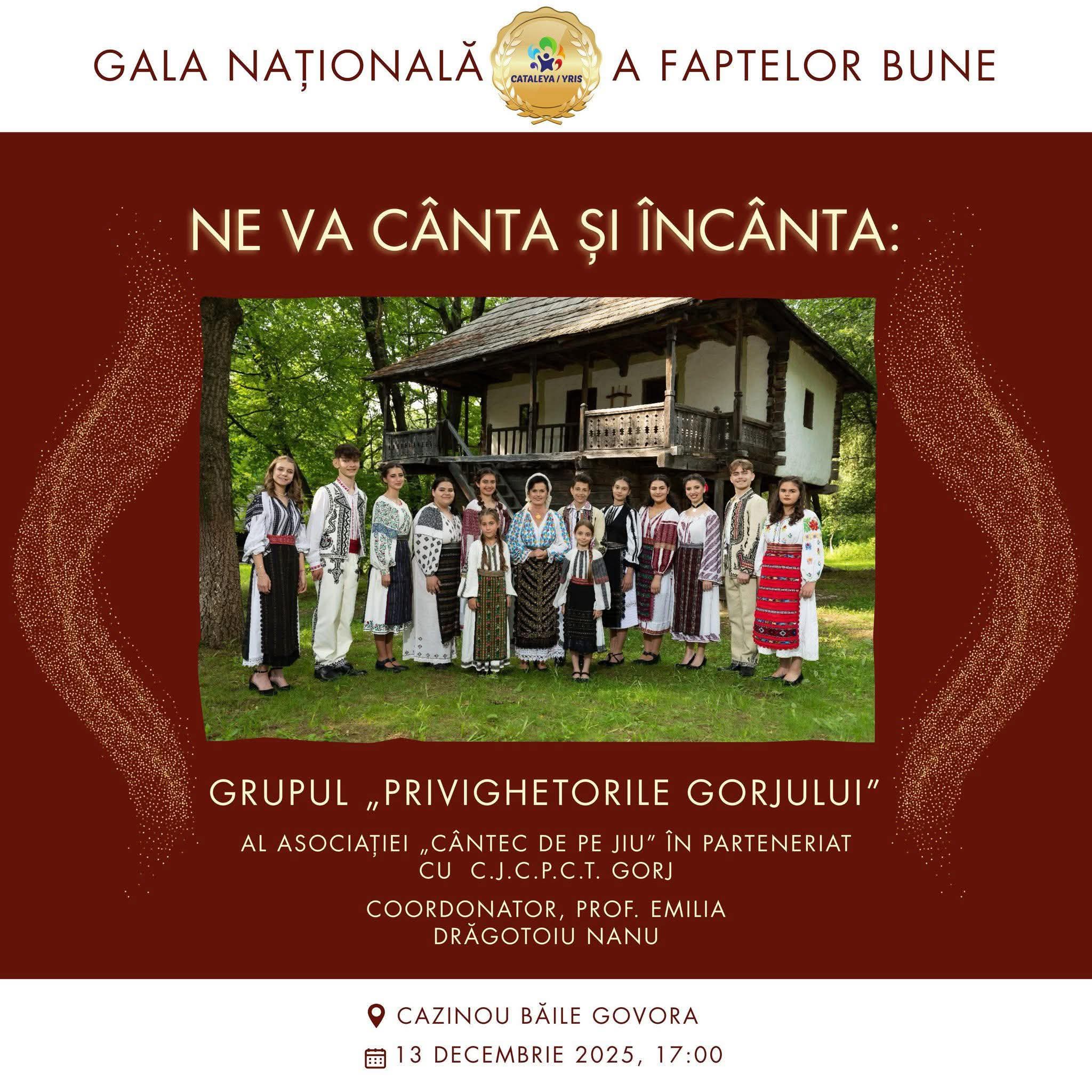 Prezența grupului va aduce în cadrul Galei un plus de autenticitate, prin interpretări tradiționale ce valorifică patrimoniul cultural al județului Gorj.