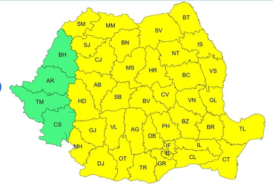 De sâmbătă seară, de la ora 20.00, până duminică la ora 10.00, va fi în vigoare o atenţionare meteorologică cod galben.