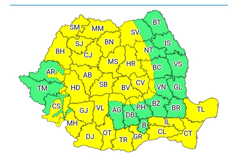 Notă: Unele intensificări ale vântului, cu viteze în general de 45…55 km/h se vor semnala și în restul teritoriului.
