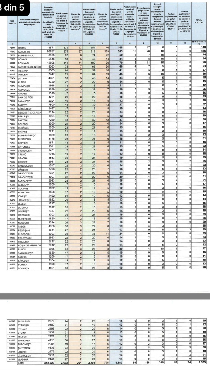 Primăriile din județul Gorj au primit, la începutul acestei săptămâni, ordinul oficial prin care se stabilește numărul maxim de angajați pe care îl pot avea în aparatul de specialitate. Documentul, transmis de Prefectura Gorj, obligă administrațiile locale să își reorganizeze structura de personal, ca parte a măsurilor prevăzute de legislația privind creșterea capacității financiare a unităților administrativ-teritoriale.