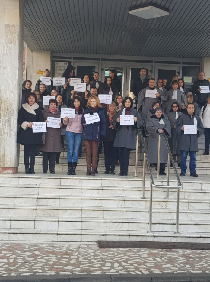 Aproximativ 40 de grefieri au continuat ieri, protestul, pe scările Palatului Justiției, în Târgu-Jiu. Aceștia își desfășoară activitatea la Tribunalul Gorj, DIICOT și la parchetele din Târgu-Jiu și sunt nemulţumiţi de intenţia Parlamentului de a elimina pensiile de serviciu. ,,Protestăm împotriva deciziei luate de către Comisia de muncă și protecție socială prin care s-a aprobat abrogarea așa zisei <pensii speciale> care de fapt este o pensie de serviciu/ocupațională și care urmează să fie votată în plenul Camerei Deputaților – for decizional”, a declarat Petre Bivolariu, grefier în cadrul Tribunalului Gorj. Miercuri, procurorii Parchetului de pe lângă Tribunalul Gorj au anunțat că susțin formele de protest inițiate de personalul auxiliar de specialitate din cadrul instanțelor judecătorești și parchetelor de pe lângă acestea.