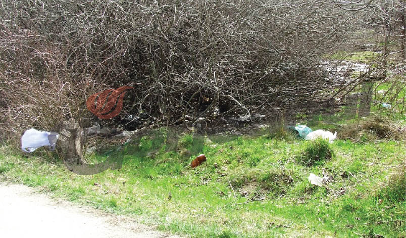 Ne-am deplasat şi noi acolo, unde am constatat că sesizarea este întemeiată, făcând şi nişte fotografii cu această ocazie. Vecinătatea locului amenajat probabil pentru ca, cei aflaţi la câmp, ori cu animalele să aibă un ochi de apă unde să se poată răcorii, ori sta la umbră, locaţia fiind prevăzută şi cu un fel de adăpătoare pentru animale, era “năpădită” ca să-i spunem şi aşa de tot felul de resturi menajere şi saci cu tot felul de sticle şi pahare de plastic, precum şi omniprezentele haine vechi abandonate probabil de “Coleusul ambulant” ce străbate satele în căruţe şi de unde respectivele haine, prea uzate pentru a mai fi vândute, sunt aruncate pe marginea drumului.