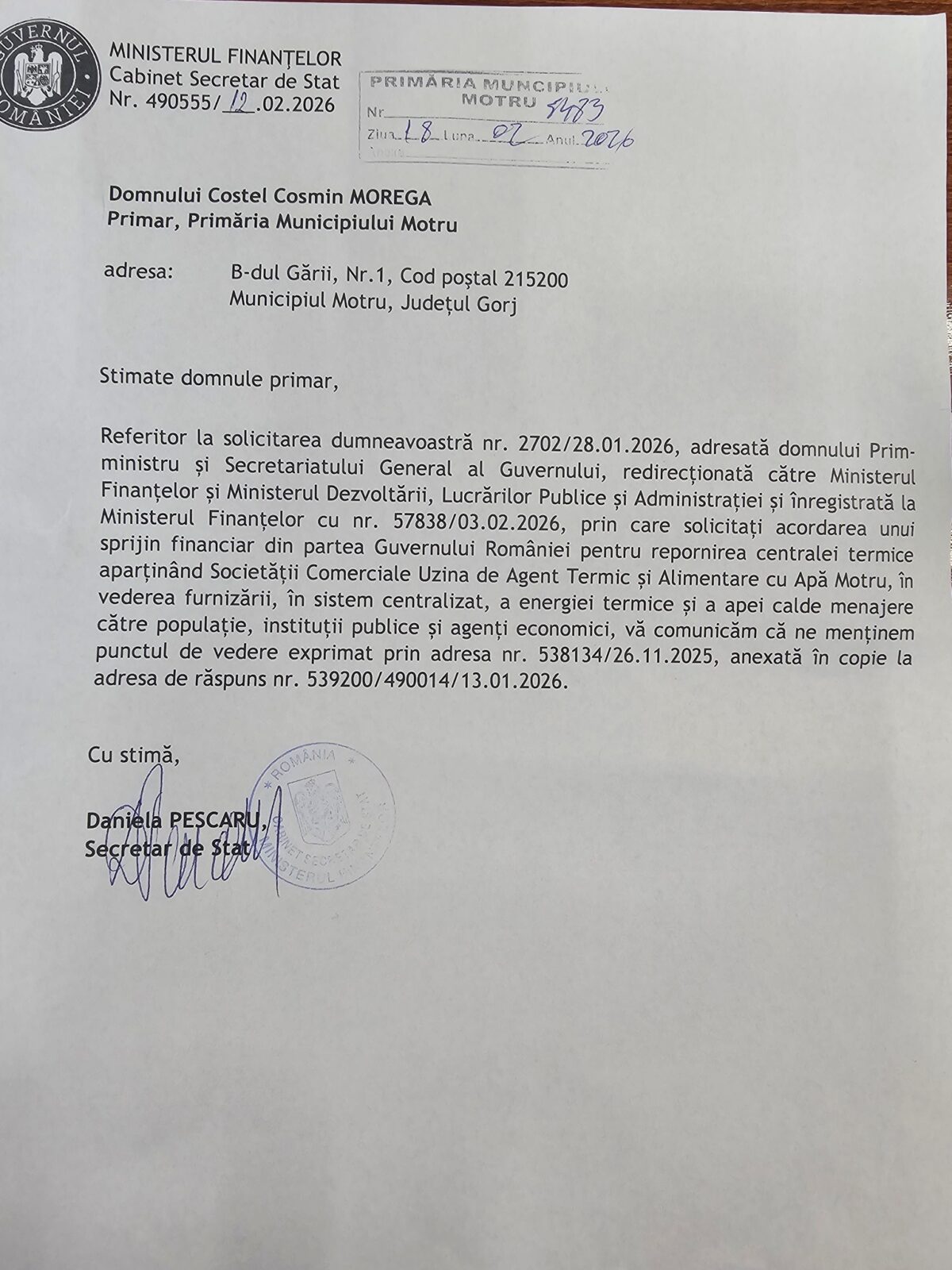 Primarul municipiului Motru, Cosmin Morega, a anunțat că Guvernul nu va acorda sprijin financiar pentru UATAA Motru. „Singura variantă pentru reluarea activității UATAA este recuperarea rapidă a debitelor de la Asociațiile de proprietari”, a precizat Morega.