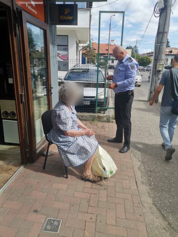 I s-a făcut rău pe stradă. Bătrână ajutată de polițiștii locali din Târgu Jiu