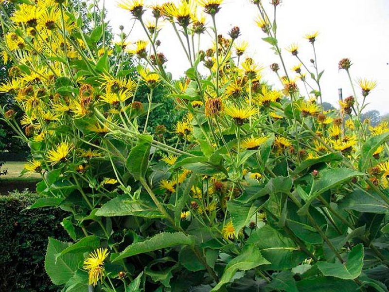 Frunzele conţin un principiu amar, vitamina C şi săruri minerale, iar florile conţin în principal helenină.