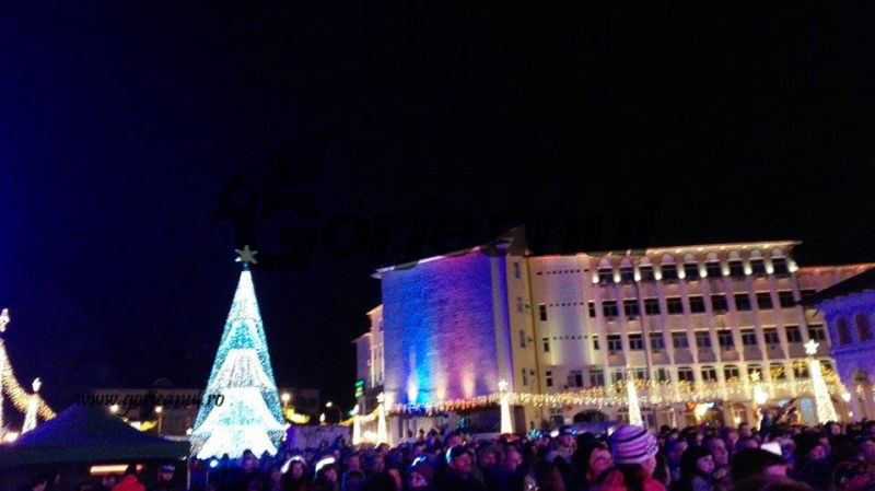 Înainte de aprinderea iluminatului specific Sărbătorilor de Iarnă, cei prezenţi în Piaţa Prefecturii au putut asculta imnul ţării, intonat de un grup de copii, au urmărit spectacolul celor de la Ansamblul Folcloric “Doina Gorjului” şi s-au delectat cu piesele formaţiei Korsar, iar mai apoi au urmărit concertul impresionant oferit de celebra trupă Phoenix.