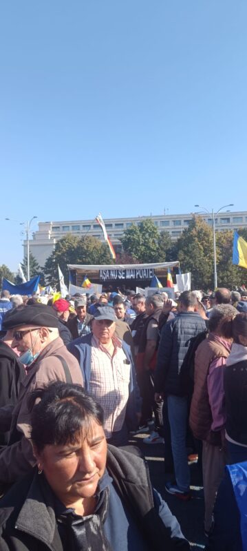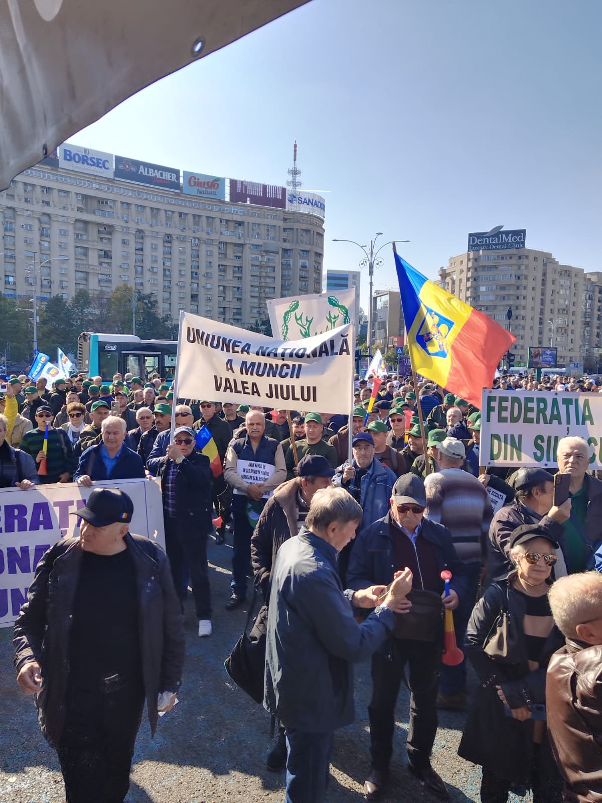 Mii de pensionari și salariați din mai toate domeniile de activitate protestează, astăzi, vineri 25 octombrie, de Ziua Armatei, în Piața Victoriei, din București. Premierul Marcel Ciolacu i-a chemat la discuții la Guvern. Acolo sunt CFR-iști, silvicultori, polițiști, mineri de la Federația Națională a Muncii din Gorj și Valea Jiului.
