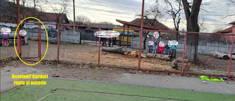 Grija pentru copii lipsește cu desăvârșire. Stația unde copiii așteaptă microbuzul școlar este un șopron amplasat în curtea în care au fost depozitate lemnele pentru unitatea de învățământ. Copiii sunt în pericol acolo, deoarece se urcă pe lemne în joacă și pot să se lovească.