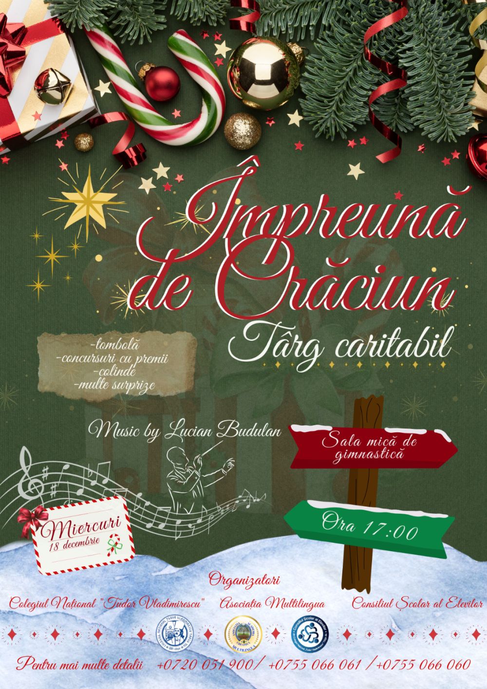 Colegiul Național „Tudor Vladimirescu” Târgu Jiu, în parteneriat cu Asociația MULTILINGUA și Consiliul Elevilor, organizează a șaptea ediție a târgului caritabil „Împreună de Crăciun”. Evenimentul, care a devenit deja o tradiție pentru comunitatea locală, va avea loc miercuri, 18 decembrie, începând cu ora 17:00, în sala de gimnastică a liceului.