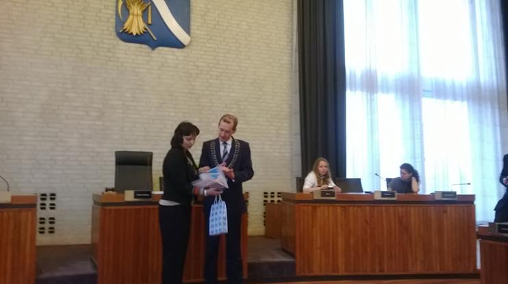 cntv74Primarul oraşului Hengelo, domnul Sander Schelberg, ne-a primit cu braţele deschise în Sala de Consiliu, invitându-ne la o discuţie non-formală despre instituţia pe care o conduce şi despre ţările implicate în proiect.