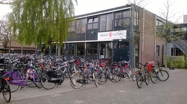 Parcarea de biciclete a liceului, mersul pe bicicletă fiind o tradiţie olandeză mondial cunoscută, dovada unui stil de viaţă sănătos şi respectuos cu mediul înconjurător. Noi, cei din delegaţia C.N. «Tudor Vladimirescu», ne-am dori să vedem aşa ceva şi în curtea şcolii noastre şi, de ce nu, în curtea fiecărei şcoli din România.