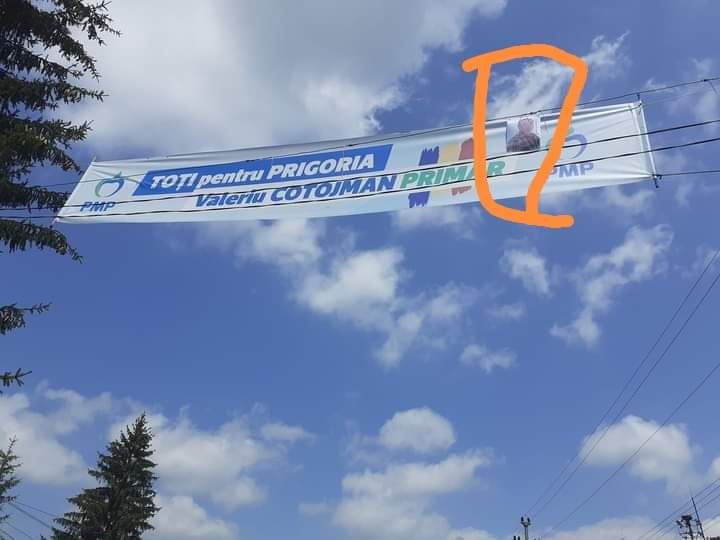 Alesul și-a conceput însă un singur banner pe care și l-a amplasat în centrul localității, lângă primărie. Cum pe banner nu se afla și chipul candidatului, Valeriu Cotojman a scos o fotografie pe imprimantă, în format A4, și a pus hârtia pe banner, după ce a prins-o cu capsatorul.