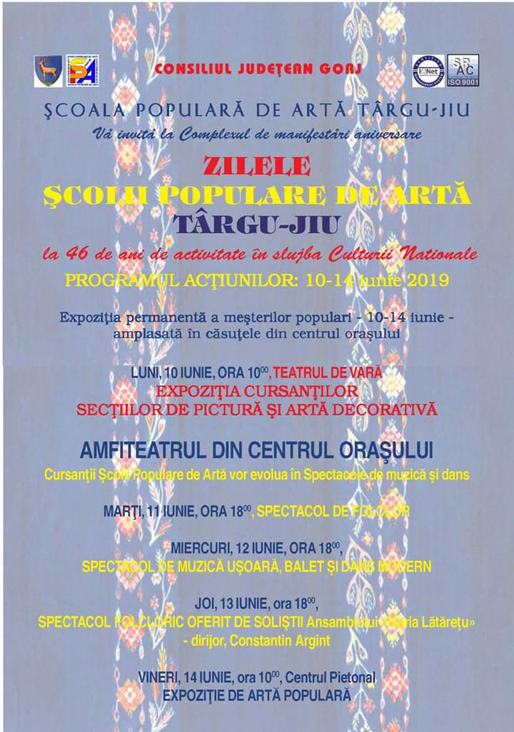 Azi, începând cu ora 18:00, pe scena Teatrului de Vară din Târgu Jiu, se va desfășura spectacolul de muzică ușoară, balet și dans modern, oferit de cursanții Școlii Populare de Artă Târgu Jiu. Evenimentul face parte din cadrul manifestării ”Zilele Școlii Populare de Artă”.