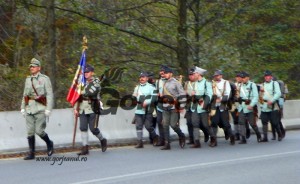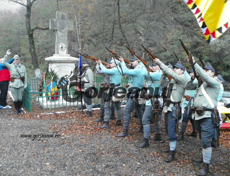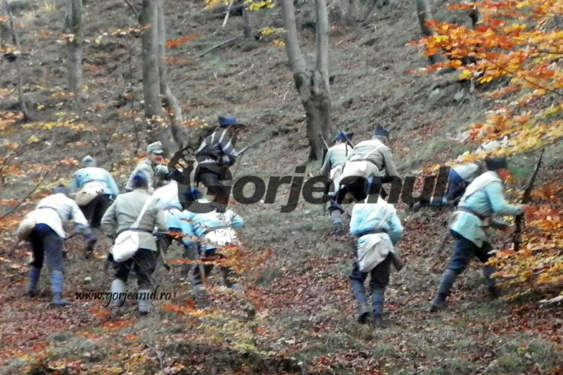 Tot în acel cadru solemn formaţiunile prezente la reconstituire au dat onorul celor prezenţi şi au fost prezentate saluturile armatelor de atunci, precum şi rugăciunea pe care militarii români o făceau înainte de luptă. Întreaga desfăşurare i-a impresionat chiar şi pe cei deprinşi cu tehnicile militare prin originalitatea şi realitatea punerii în scenă. În continuare pe dealul din faţa monumentului din defileu a fost simulată lupta de acum un secol. A fost aşa cum vă spuneam un moment emoţionant, ce a întregit tabloul folosind spre surpriza multor dintre cei prezenţi puşti adevărate cu muniţie de manevră, ce au dat o notă de originalitate rememorării luptelor de acum un secol când militarii români au respins atacul dat de către cele mai renumite trupe bavareze din Primul Război Mondial, scriind aşa cum consemnează şi istoricii militari o pagină de glorie în cartea Războiului Mare, cum a fost denumită de unii prima conflagraţie mondială.