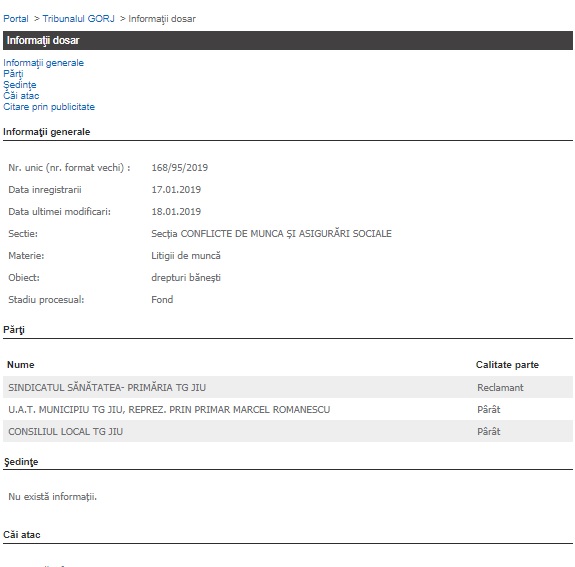 Primăria Târgu-Jiu s-a ales cu un nou proces. Sindicatul “Sănătatea”, condus de Ion Măruță, a acționat în judecată instituția publică din municipiu, pentru neacordarea voucherelor de vacanță în 2018 pentru 48 de salariați. Este vorba despre medici și asistenți ai cabinetelor medicale din cadrul unităților de învățământ din municipiu, dar și despre angajați ai primăriei prin direcția de patrimoniu.