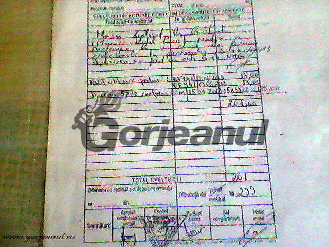 Photo0016(2)Photo0014(2)Pentru aceste “extravaganțe” managerul privat s-a ales, anul trecut, cu imputarea cursului făcut la Mamaia, dar fără plata penalităților și fără restituirea banilor pentru transportul făcut în interes de serviciu în stațiunea de pe litoral. Giorgi nu a plătit nici uzura mașinii de serviciu pe care, s-a dovedit, că a folosit-o în interes personal, cursul fiindu-i imputat, și nici nu a dat înapoi cei 200 de lei încasați pentru dubla deplasare Mamaia-Ploiești.
