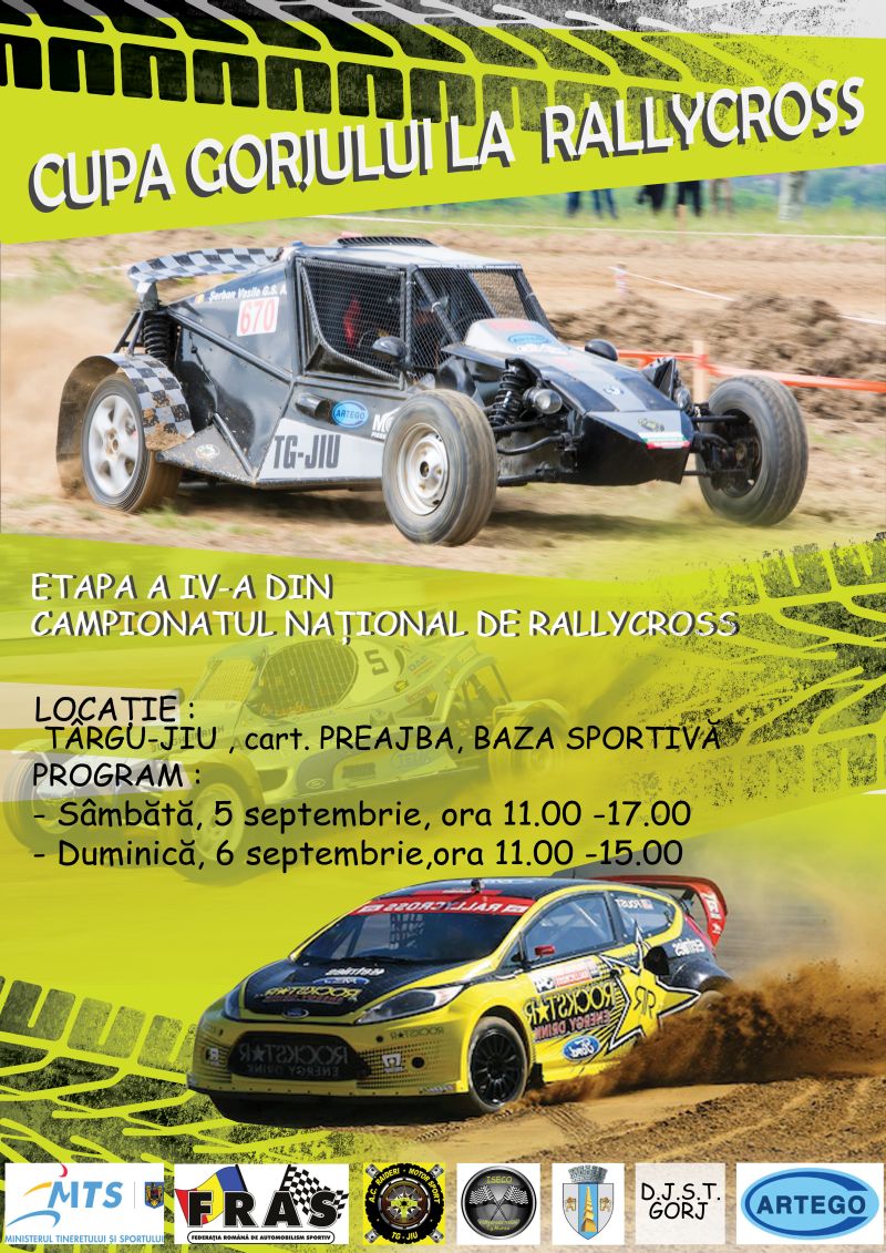 În acest week-end, mai precis în zilele de 5 şi 6 septembrie, la Baza Sportivă de Autocross din municipiul Târgu-Jiu, cartierul Preajba, se va desfăşura competiţia sportivă “Cupa Gorjului la Rallycross”, ce punctează pentru etapa IV-a din Campionatul Naţional de Rallycross, desfăşurat sub egida Federaţiei Române de Automobilism Sportiv.
