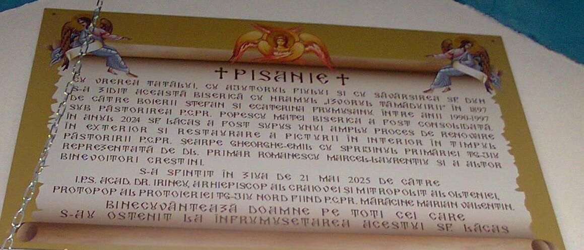 În ziua de miercuri, 21 mai 2025, în cadrul mai larg al «Zilelor Municipiului Târgu-Jiu», dar, şi în ziua marii sărbători a «Sfinților Împărați Constantin și Elena», Înaltpreasfințitul Părinte Dr. Irineu, Arhiepiscopul Craiovei și Mitropolitul Olteniei a resfințit biserica parohială cu hramul «Izvorul Tămăduirii» din Municipiul Târgu-Jiu. Pe o vreme capricioasă şi cu stropi de ploaie, Mitropolitul Olteniei, împreună cu părinţii protoierei Marian Mărăcine (Protoieria Tg. Jiu Nord) şi Ionel Cîmpeanu (Protoieria Tg. Jiu Sud) şi cu un larg sobor de preoţi şi diaconi, au conferit o notă sărbătorească oficierii Sfintei şi Dumnezeieştii Liturghii, ca urmare a faptului că dintr-o capelă de cimitir a renăscut o frumoasă biserică de parohie, manifestarea fiind onorată de către comunitatea credincioșilor din municipiu şi chiar din judeţ, în baza căreia au fost finalizate lucrările de restaurare și de înfrumusețare a lăcașului de cult, desfășurate în ultimii ani sub îndrumarea și prin strădania părintelui paroh Gheorghe Emil Șearpe, cel care, la propunerea părintelui protoiereu Marian Mărăcine, a fost ridicat la rangul onorific de Iconom Stavrofor, pentru activitatea sa pastorală și administrativă pe care le-a desfășurat cu multă râvnă şi cu dăruire în folosul Bisericii și al