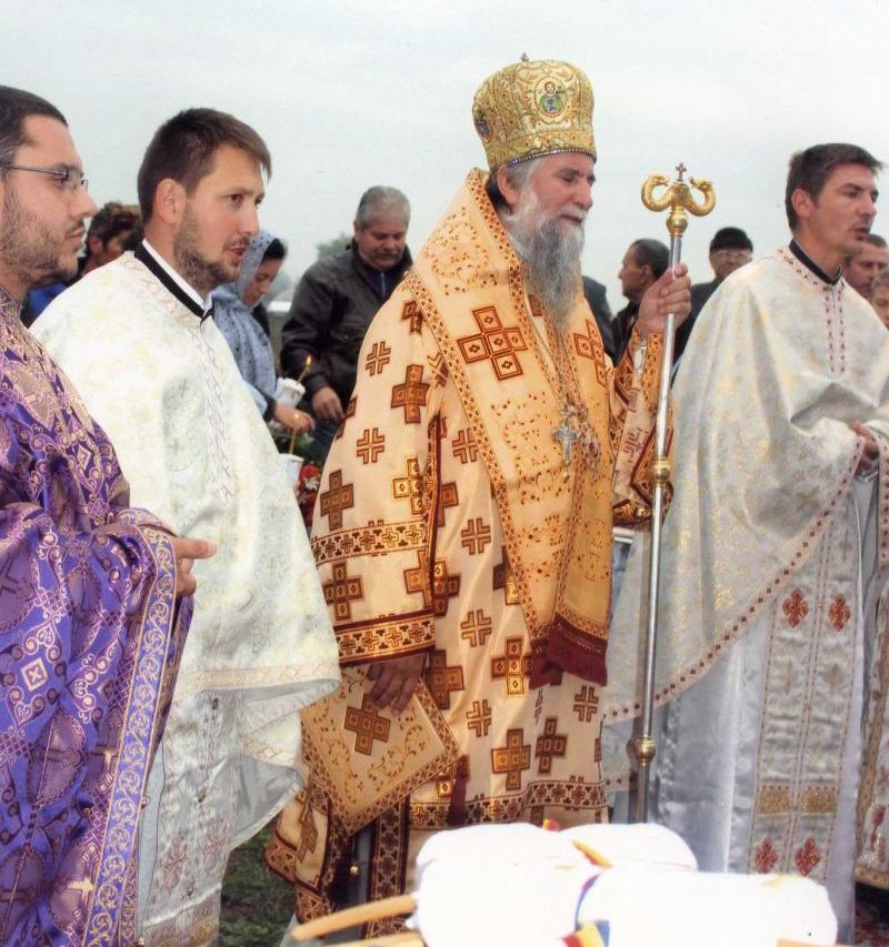 Înalt Preasfinţitul Irineu însoţit de protopopul Iulian Mărgineanu şi urmat de un