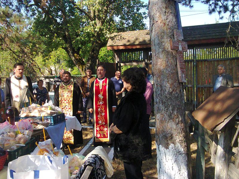 Aşadar, la ora 11,15, a fost săvârşită slujba Parastasului de pomenire a personalităţilor culturale omagiate la Măceşu de Târgu-Cărbuneşti, de către un ales sobor de preoţi alcătuit din Preacucernicul Părinte, lector univ. dr. Ion Sorin Bora, Director de specialitate al Facultăţii de Teologie din Craiova, Precucernicul Părinte Pr. Dan Dulămiţă, Parohia Târgu-Cărbuneşti şi Preacucernicul Părinte Pr. Dragomir Ţicleanu, Parohia Ţicleni! Soborul de preoţi a săvârşit apoi sfinţirea crucilor de pomenire ale marelui om cu suflet mare, Iuliu Călina, a poetului Nicolae Diaconu, a căpitanului de oşti Radu Ţicleanu, legat de numele lui Mihai Viteazul şi a eroului Zamfir Zaharia! Într-o atmosferă de vie dezbatere şi de omagiere pioasă, cu o directă referire la ceea ce înseamnă Sfânta Cruce pentru umanitatea creştină, cei prezenţi au căutat să sublinieze cât sunt de importante datinile şi obiceiurile de Ziua Înălţării Sfintei Cruci, zi ce vesteşte sfârşitul verii şi începutul toamnei, deoarece calendarul popular consemnează această zi şi sub alte denumiri, cum ar fi «Cârstovul Viilor» şi «Ziua Şarpelui», cu specificarea că sub prima denumire, ziua este cunoscută mai ales în zonele deluroase şi sudice, aşa cum este şi zona satului Măceşu, în zonele viticole, marcând începutul culegerii viilor. A doua denumire este legată de faptul că, din această zi, se crede că şerpii şi alte reptile încep să se retragă în ascunzişurile subterane, hibernând până în primăvară, iar, la sate, încă se mai crede că şerpii, înainte de a se retrage, se strâng mai mulţi la un loc, se încolăcesc şi produc o mărgică numită «piatra nestemată», ce ar folosi pentru vindecarea tuturor bolilor. Potrivit altor tradiţii, de Ziua Crucii se strâng ultimele plante de leac (boz, micşunele, mătrăgună, năvalnic), plante care sunt duse împreună cu buchete de flori şi busuioc, la biserică, pentru a fi puse în jurul crucii şi a fi sfinţite. Plantele sfinţite se păstrează în casă, la icoane sau în alte locuri ferite, fiind folosite pentru vindecarea unor boli, dar şi la farmecele de dragoste! Busuiocul sfinţit de Ziua Crucii se pune în vasele de apă ale păsărilor, pentru a le feri de boli, în lăutoarea fetelor, pentru a nu le cădea părul, şi la streşinile caselor, pentru a le feri de rele, în special de trăsnete. La «Muzeului Crucilor» din satul Măceşu de Târgu-Cărbuneşti, Gorj, de la o femeie mai în vârstă, aflată în apropiere, am reţinut această splendidă rugăciune: ,,Să se scoale Dumnezeu, și să se risipească vrăjmașii Lui, și să fugă de la fața Lui cei ce-L urăsc pe Dânsul. Să piară cum piere fumul, cum se topește ceara de fața focului, așa să piară demonii de la fața celor ce-L iubesc pe Dumnezeu și se însemnează cu semnul Crucii, zicând: Bucură-te, preacinstită și de viață făcătoare Crucea Domnului, care gonești demonii cu puterea Celui ce S-a răstignit pe tine, a Domnului și Mântuitorului nostru Iisus Hristos, Care S-a pogorât la iad, și a călcat puterea diavolului, și te-a dăruit nouă pe tine, cinstita Crucea Sa, spre izgonirea a tot vrăjmașul. O, preacinstită și de viață făcătoare Crucea Domnului, ajută-mi mie cu Sfânta Fecioară Născătoare de Dumnezeu și cu toți Sfinții, în veci. Amin”! În loc de concluzie pentru prima parte a materialului, să reţinem faptul că în numele Primăriei şi al Consiliului local al Oraşului Târgu-Cărbuneşti, domnul prof. Dănuţ Birău a înmânat Familiei Călina, Diploma de «Cetăţean de Onoare post-mortem» pentru Domnul Călina Iuliu, cel care şi-a dăruit sufletul său nobil, viaţa, mintea şi resursele sale materiale pentru ca «Muzeului Crucilor» din satul Măceşu de Târgu-Cărbuneşti să prindă viaţă şi să devină o realitate a Sărbătorii Înălţării Sfintei Cruci! (VA URMA)