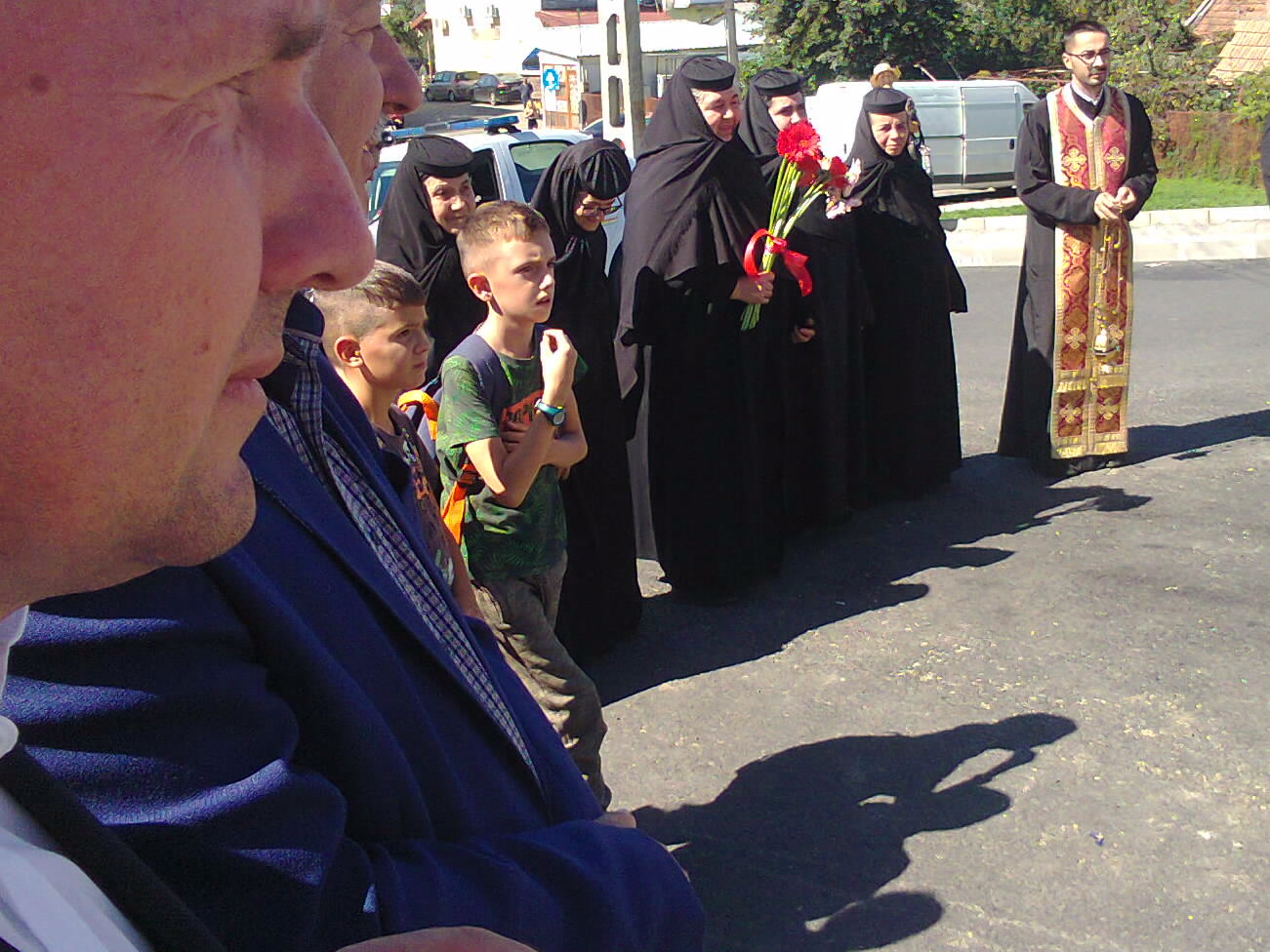 Mântuitorul, a murit cu trupul Său omenesc, a coborât până în iad şi i-a dezlegat pe cei care se aflau în iad! Aşadar, biruinţa pe care Iisus Hristos a avut-o asupra morţii, deci, aceasta reprezintă «capul de mort» şi oasele pe care le vedem acolo, dar, nu înţeleg, de ce, foarte mulţi sunt «deranjaţi» de acest lucru? O idee şi un lucru minunat, chiar Maica Stareţă mi l-a sugerat chiar ieri, că sunt oameni deranjaţi de capul de mort de aici, dar, dacă ne ducem peste drum în incinta şcolii, o să vedem că ies pe poartă copii care au pe tricouri «capul de mort», iar, părinţii aceia care fac unele comentarii pe reţele de socializare, că, vezi, Doamne, că e capul de mort, că e înfiorător, dar, nu-i înfioară capul de mort de pe tricoul copiilor dumnealor, atunci când pleacă de acasă, dar, îi înfiorează aici, pe cruce! Nu ştiu, dar, cred că este problema acelor culte religioase care nu acceptă crucea, spunând că este «măciuca» pe care a fost răstignit Hristos! Dar, noi spunem că această cruce a fost ridicată la acest mare rang de «armă» de biruinţă împotriva diavolului, prin jertfa pe care a făcut-o Mântuitorul Iisus Hristos pe cruce! Deci, sângele Lui Hristos a sfinţit Crucea! Încă un amănunt! Noi, nu ne închinăm materialului din care e făcută crucea, că şi icoana, poate să fie de sticlă, poate să fie de lemn, de carton. Din orice material ar fi ea, noi, ne închinăm la ceea ce reprezintă ea! Crucea este «arma» de biruinţă împotriva diavolului, este «arma» cu care noi, creştinii, trebuie să ne înarmăm, atunci când vrem să luptăm cu ispitele vieţii acesteia! Pentru noi, pentru creştini este o «armă» nebiruită împotriva diavolului şi ne înarmăm cu ea, aşa cum spuneam, iar, pentru aceia care nu au loc de ea, într-adevăr, este o «măciucă», şi poate cândva, când va veni vremea, că ştim bine că la a doua venire a Mântuitorului Iisus Hristos, atunci, vor vedea şi ei, cât de rău este, că nu au respectat crucea, aşa cum trebuia! Iar, în Sfânta Evanghelie, în «Apocalipsa» vedem că se arată faptul că atunci când va veni Mântuitorul a doua oară, semnul Sfintei Cruci va fi însemnat pe cer, mai întâi, şi apoi pe fruntea creştinilor, aşa cum deosebim «oile» de «capre», adică, oamenii credincioşi, de cei necredincioşi! Dar, eu, vă repet, celor care sunteţi aici, pentru că sunteţi prezenţi cei credincioşi, că nu trebuie să vă spun mai multe despre sfânta cruce! Poate că ştiţi chiar mai multe decât mine! Vă mulţumesc pentru că aţi venit, astăzi, aici şi vă îndemn ca ori de câte ori treceţi pe lângă această sfântă cruce, însemnaţi-vă faţa cu sfânta cruce, nu vă fie ruşine, pentru că în felul acesta, Îl mărturisiţi pe Hristos! Că acolo sus, la mine la biserică, sunt oameni care trec pe lângă sfânta biserică, şi nu că nu ar fi credincioşi, dar, se uită, aşa, în stânga-dreapta, ca să nu-i vadă cineva, îşi lasă capul şi fac o cruce, aşa, scurtă şi repede, ca şi cum s-ar spune că le este ruşine! Fraţilor, nu vă fie ruşine cu Hristos, pentru că nici Lui Hristos nu-I este ruşine cu dumneavoastră! Însemnaţi-vă faţa cu fruntea sus, pentru că de ajutorul Lui Dumnezeu şi de pronia divină, avem nevoie cu toţi! În încheiere, felicit autorităţile locale pentru hotărârea aceasta, şi chiar dacă nu va fi o mulţumire din aceasta, lumească, domnule primar, fiţi convins că în Împărăţia Lui Dumnezeu este o mare mulţumire şi un mare loc, atunci când vom fi acolo, pentru că e clar, toţi ne vom duce şi Dumnezeu ne aşteaptă pe toţi! Dumnezeu să ne audă la toţi rugăciunile noastre! Vă mulţumesc încă o dată, tuturor celor care sunteţi aici, şi închei cu acelaşi îndemn: ori de câte ori treceţi pe aici, nu vă fie ruşine să vă faceţi semnul sfintei cruci, pentru că în felul acesta, toţi Îl mărturisim pe Hristos! Doamne-ajută şi vă mulţumesc”! Iar, ca o completare binevenită la cele spuse de Preacucernicul Părinte Dan Dulămiţă, Primarul Oraşului Târgu-Cărbuneşti, prof. Dănuţ Birău a spus în încheierea manifestării: ,,Astăzi, în zi de mare sărbătoare, la sfinţirea acestei troiţe, îi mulţumesc Maicii Stareţe şi maicilor însoţitoare, aşa cum îi mulţumesc şi Părintelui Serafim, care a donat, astfel, cele două cruci către Oraşul Târgu-Cărbuneşti, una către Mănăstirea «Sfântul Ioan Botezătorul» şi una către noi, către primărie, şi acum, de asta sunt aici, de asta sunt primar, că trebuie să fac faţă şi la critici şi la unele laude, că le-am spus la toţi, să mă injure, să mă critice! Iar, cine apreciază şi Îl are pe Dumnezeu în suflet, aşa cum a spus şi părintele, trece, se închină şi nu trebuie să-i fie ruşine! De asta suntem aici, ca să mergem şi mai departe! Din câte a spus părintele, cred că a fost foarte cuprinzător, iar, cine a vrut să înţeleagă, a înţeles! De aceea, vă mulţumesc, vă doresc multă sănătate şi mereu să fim aproape!”, pentru că aproapele, am spune noi, împărtăşeşte întotdeauna aceleaşi idei, aceleaşi sentimente şi aceleaşi convingeri! Doamne-ajută!