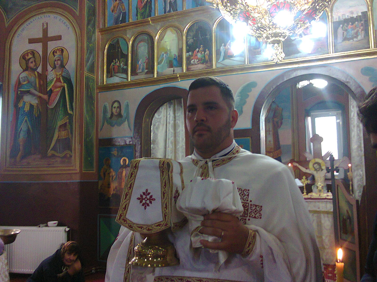 În ziua sfântă de 14 septembrie 2025, a «Înălţării Sfintei Cruci», am poposit cu mare interes şi cu o deosebită curiozitate la Biserica Parohiei Menţii din Dos, din comuna Borăscu, pentru a-l cunoaşte mai bine pe unul dintre cei mai tineri şi mai înzestraţi slujitori ai altarului, Preacucernicul Părinte Pr. CORNESCU Valentin DANIEL, unde am participat la Sfânta Liturghie şi apoi la Parastasul de pomenire a vrednicului de pomenire, Preasfinţitul Părinte Damaschin Coravu, a cărui zi de naştere ar fi fost în această zi binecuvântată de Dumnezeu. După o slujbă impecabilă, Preacucernicul Părinte a făcut o trecere în revistă a evenimentelor duhovniceşti pe care le-a proiectat cu înţelepciune în această zi binecuvântată şi a început prin a spune: ,,Praznicul acesta al «Înălţării Sfintei Cruci» a fost instituit de către Împărăteasa Elena care a găsit de cuviinţă să meargă la locurile sfinte, adică, la Ierusalim, şi să găsească acolo Crucea pe care a fost răstignit Domnul Iisus Hristos. Cu anevoie şi cu greutate s-a făcut această găsire, iar, pentru că nu se dezgropase doar una, ci trei cruci, pe lângă Crucea Mântuitorului şi crucile celor doi tâlhari, pentru a o recunoaşte pe cea a Domnului, s-a întâmplat ca pe acolo să treacă un convoi al unei femei moarte. S-au atins cele trei cruci de trupul defunctei, iar, când a fost atinsă de Crucea Mântuitorului, femeia a înviat! Să înţelegem că de atunci, Crucea nu mai este un semn al morţii, aşa cum era în Imperiul roman, ci, este un semn al biruinţei şi al învierii, pentru că aşa se înţelege Învierea Mântuitorului în cea de a treia zi de la înmormântare. În nădejdea aceasta a învierii suntem datori ca toată viaţa noastră să căutăm această înviere, pentru că numai împreună cu Hristos şi cu sfinţii Săi din ceruri, ne putem bucura! Dar, câtă bucurie şi câtă sfinţenie este peste un sat binecuvântat de Dumnezeu! Cu câtă dragoste şi cu câtă râvnă întâmpinaţi şi dumneavoastră, astăzi, troiţele care se găsesc la răspântie de drum!