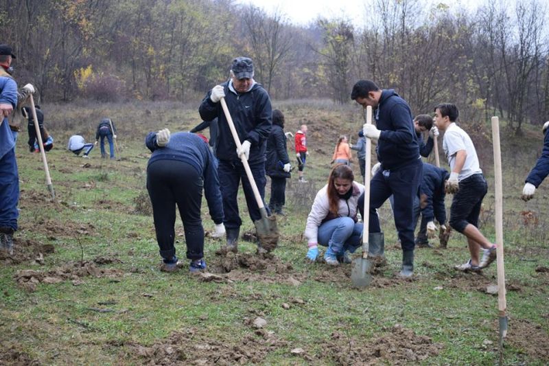 Sute de voluntari au participat la plantarea a 9.000 de puieți de salcâm și cer, pe o suprafață de 1,8 ha, teren neproductiv și cu pericol de alunecare, aparținând Unității Administrativ Teritoriale (UAT) a comunei Vladimir.