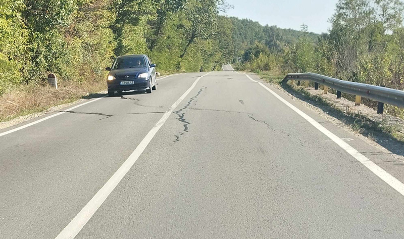 iar drumul arată jalnic, însă în urmă cu circa două luni s-a început peticirea acestuia pe o porțiune de 300 de metri, în pădure la Bârsești.