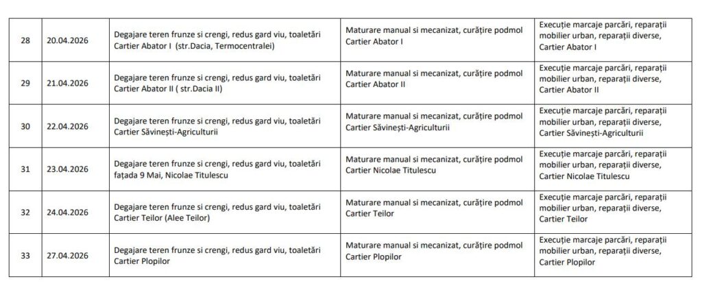 Graficul intervențiilor va fi publicat periodic, astfel încât locuitorii să știe când sunt programate lucrări în cartierul lor.