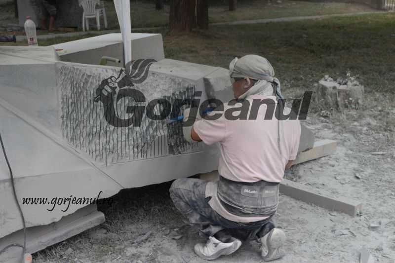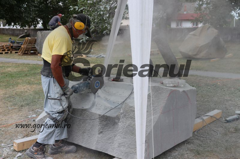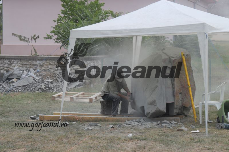 Mihai Ţopescu, celălalt sculptor român prezent în simpozion, foarte cunoscut pentru creaţiile sale în sticlă, spune că s-a întâlnit aici pentru prima dată cu andezitul: “Este un material dificil, dar sper să îmi ofere satisfacţie. Este prima dată când lucrez un asemenea material, dar este foarte greu de lucrat. Îmi era mai uşor în atelierul de sticlărie, la 1.200 de grade”. Fiind târgujian, desigur că opera lui Brâncuşi îi este foarte apropiată.