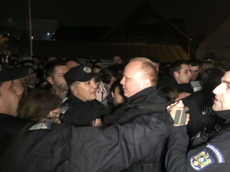 Pentru a ține lucrurile sub control, jandarmii s-au așezat pe 2-3 rânduri pentru a putea crea blocaje cu care să îi „convingă” pe cei de la secțiile de votare că trebuie să stea la coadă. Nimeni nu voia însă la coadă, iar în înghesuiala creată au fost și persoane care au ieșit destul de șifonate de acolo. „Pur și simplu își bat joc de noi. Mie mi-a venit rău acum. Am leșinat din cauza îmbrâncelilor. M-am sufocat, asta s-a întâmplat. Voiau să mă trimită la spate, să iau rândul încă o dată de la coadă. Mi-a venit rău, iar ei mă trimiteau la coadă. Halal organizare”, a spus un domn care a reușit cu chiu cu vai să intre în Sala Sporturilor.