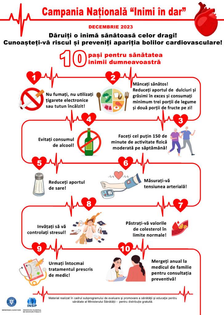 În luna decembrie se derulează la nivel naţional, sub sloganul „Dăruiţi o inimă sănătoasă celor dragi! Cunoaşteţi-vă riscul şi preveniţi apariţia bolilor cardiovasculare!”, campania privind prevenţia bolilor cardiovasculare – „Inimi în dar”. La nivel județean, coordonarea implementării campaniei este asigurată de Direcția de Sănătate Publică Gorj, prin Compartimentul de Evaluare și Promovare a Sănătății.