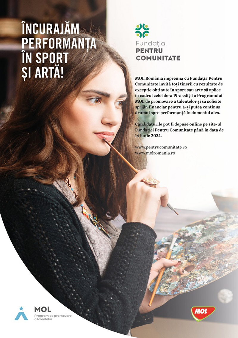 MOL România și Fundația Pentru Comunitate au dat startul înscrierilor pentru cea de-a 19-a ediție a Programului MOL de promovare a talentelor, prin care oferă sponsorizare tinerilor artiști și sportivi. Candidații pot depune proiectele până pe data de 14 iunie. Aceștia pot solicita finanțare pentru a achiziționa materiale, echipamente sportive, instrumente muzicale și/sau pentru acoperirea cheltuielilor de deplasare la diferite concursuri, festivaluri, tabere de pregătire, cantonamente.