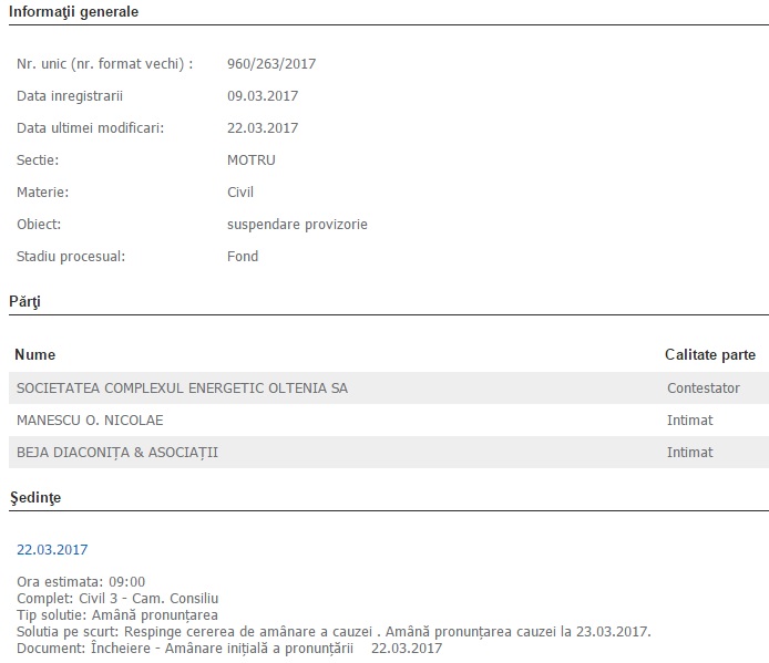 Urmare a deciziei instanței, livrarea cărbunelui către Turceni și Ișalnița nu mai este pusă în pericol, ea trebuind să fie reluată.