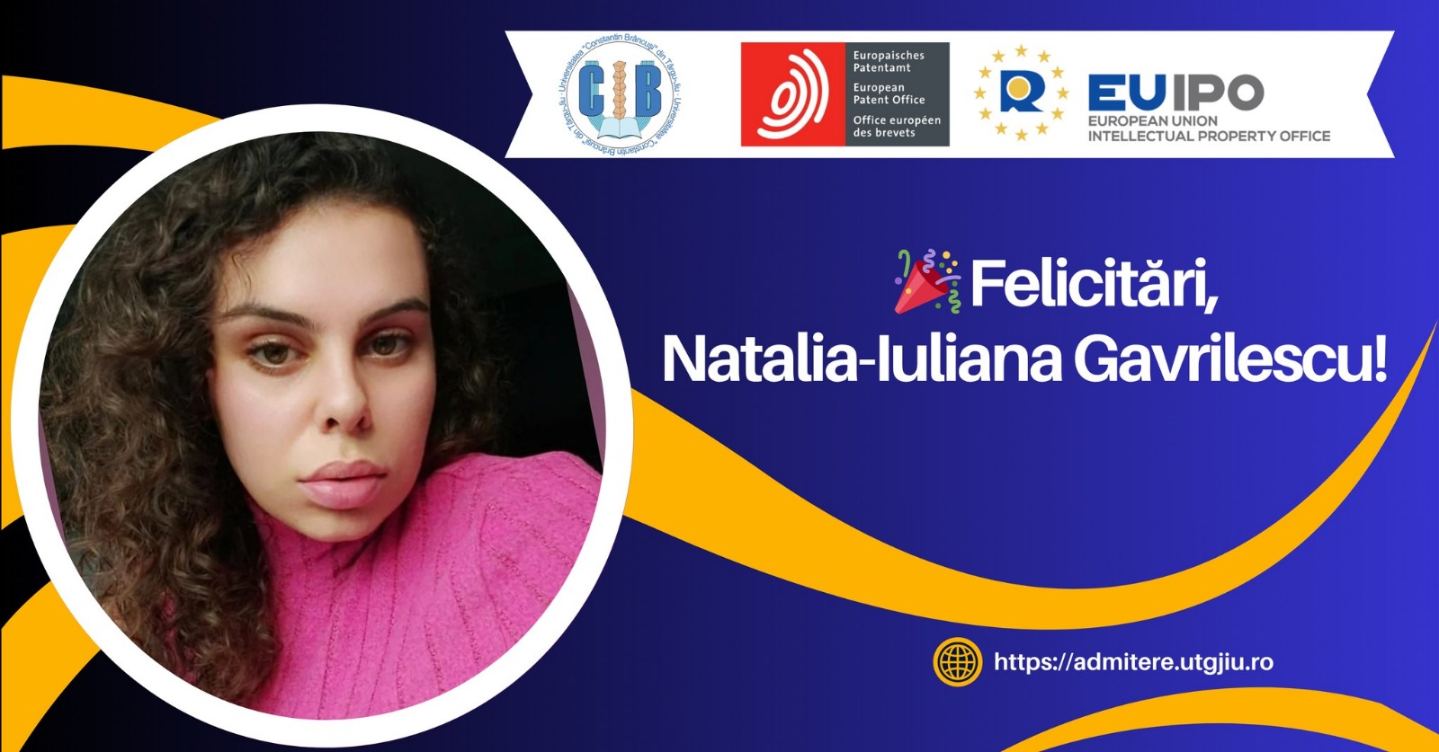 Natalia-Iuliana Gavrilescu, absolventă a specializării Contabilitate și Informatică de Gestiune din cadrul Universității „Constantin Brâncuși” din Târgu Jiu, a fost acceptată pentru un prestigios internship la EUIPO – Oficiul Uniunii Europene pentru Proprietate Intelectuală.