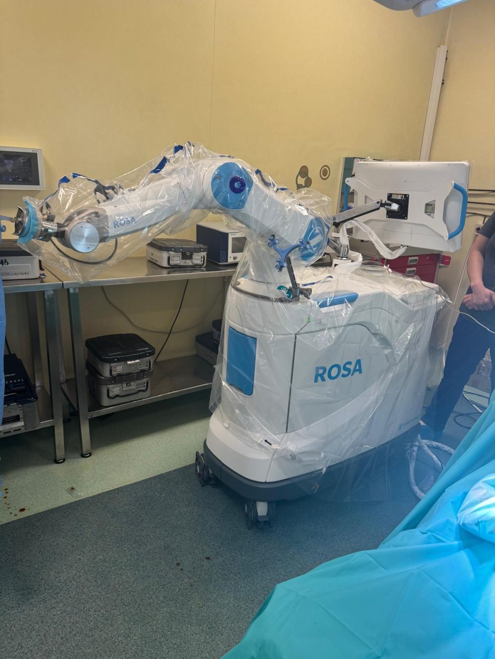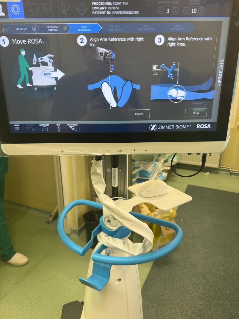 Pacienților li s-au implantat proteze de genunchi cu ajutorul unei tehnici moderne, cei doi medici practicând chirurgia robotică cu ajutorul unității robotice ROSA Orthopedics, produs al companiei Zimmer Biomet.