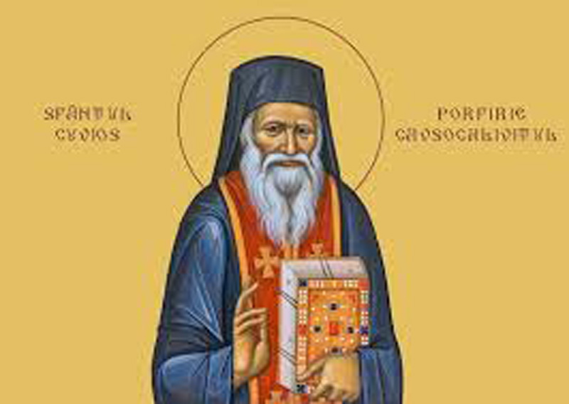 Sfântul Cuv. Porfirie Cavsocalivitul a fost un monah și un mare duhovnic grec contemporan care a trăit în secolul al XX-lea în Sfântul Munte Athos şi de-a lungul întregii sale vieți a suferit de multe boli pe care le-a dus cu smerenie până la vârsta de 85 de ani, fiind canonizat de către Sfântul Sinod al Patriarhiei Ecumenice în anul 2013, având data de prăznuire la 2 decembrie. Sfântul PORFIRIE KAVSOKALIVITUL (n. 7 Februarie1906, Grecia-†2 Decembrie 1991, Sfântul Munte Athos) este înaintevăzătorul şi mângâietorul celor pe care nu-i iubeşte nimeni, spunea că delicateţea dumnezeiască a întâmpinat cu deschiderea braţelor inimii nenumărate suflete zdrobite, iar celor care le-au primit, cu iscusinţa Duhului Sfânt le-a dezlegat poveri şi dureri de care alţii nu se puteau atinge nici măcar cu degetul. Prin ascultare neştirbită dobândindim din tinereţe darul înaintevederii, dacă ne-a preamărit Domnul cu lucrare tainică şi binecuvântată, dăruită spre folosul unei mari mulţimi de oameni, care au aflat prin noi pacea, bucuria şi luminarea Mângâietorului nostru Ceresc. Să ne tămăduim cele dinlăuntru, ca astfel să ni se limpezească şi vieţuirea noastră cea de toate zilele şi, pe cât va fi cu putinţă, să se reaşeze întru cuviinţă şi înţelepciune toate cele ale lumii, spre a se face lucrătoare deplina cinste şi dragoste dintre semeni. Dumnezeu să nu ne lase pe noi să rămânem robi încătuşaţi în înţelesurile cele slabe ale lumii, ci, să ne ridicăm inimile spre înţelegerea că Biserica îşi are începătura înainte de întemeierea lumii, iar menirea şi puterea cea tainică a omului este de a îmbrăţişa în rugăciune întreaga fire omenească şi toată făptura. ,,Cu toate că ne ştim atât de zăbavnici şi nevrednici, Te rugăm, Doamne, dăruieşte-ne şi nouă curăţia credinţei şi întăreşte-ne voinţa pentru a râvni să fim sloboziţi cu totul din lucrarea cea întunecată a ascunderii în materie, în simţuri şi lucruri pământeşti. Ştim că privirea Ta binecunoscătoare şi puterea pe care o ai prin părtăşia la dumnezeiasca fire este neîncetat cu noi, strălucind în focul dragostei Duhului Sfânt. Pentru aceea odihna şi pacea cea minunată ce se revarsă dintru Tine, ne învăluie deopotrivă în răcoarea şi vâlvătaia cea neasemuit de fierbinte a rugăciunilor şi iubirii tale pentru noi! Învredniceşte-ne pe toţi de împlinirea si lucrarea cea curătitoare a cuvintelor Evangheliei, ca astfel fiind sloboziţi din lanţurile cele întunecate ale cugetării trupeşti, să izvorască şi ochii noştri lacrimi şi priviri care zboară dincolo de cele văzute şi simţite. Şi fie ca, în taina cea preacurată a venirii Duhului Sfânt, El să Se sălăşluiască întru noi dimpreună cu Tatăl şi cu Fiul, spre unirea firii omeneşti întru una”! Sf. Cuv. PORFIRIE KAVSOKALIVITUL spune că în împrejurări grele, e cât se poate de firesc ca omul creştin să caute atât povăţuirea bună, cât şi adresarea directă către Dumnezeu şi Sfinţii Săi. Da, putem grăi Domnului şi tuturor Sfinţilor care au biruit lumea şi moartea. Avem această putere sădită întru noi, pentru că fiecare în parte este un membru viu al Trupului lui Hristos – Biserica, dar şi pentru că suntem persoane vii, oameni unici, copii ai lui Dumnezeu. De aceea, e cât se poate de firesc ca fiecare dintre noi să îndrăznească a grăi cu Părintele său – Dumnezeu Tatăl, cu Fratele nostru cel Mare – Hristos Domnul, cu Mângâietorul şi Ocrotitorul nostru – Sfântul Duh, cu Maica noas¬tră – Preacurata Fecioară Maria, dar şi cu întreaga noastră familie! În fine, el ne mai spune: ,,Nu ajungeţi sfinţi vânând răul. Lăsaţi deoparte răul! Indreptaţi-vă privirea spre Hristos şi El vă va mântui. Ceea ce-l face sfânt pe om este iubirea, închinarea la Hristos, care nu poate fi pusă în cuvinte, nu poate, nu poate… Omul încearcă să se nevoiască, să facă astfel de lucruri şi să-şi chinuiască fiinţa din iubire pentru Dumnezeu.