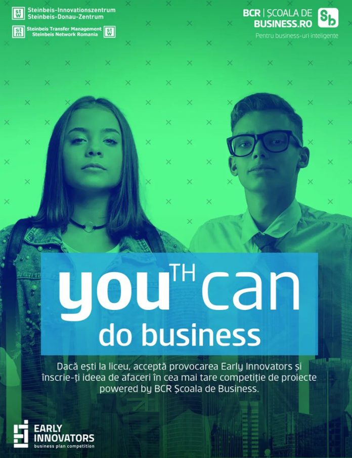 Elevii de liceu se pot înscrie, până pe 10 decembrie, la cea de-a doua ediție a Early Innovators Business Plan Competition, un concurs național pentru planuri de afaceri cu premii totale de peste 4.000 de euro. Competiția își propune să dezvolte mentalitatea antreprenorială în rândul tinerilor, bazându-se pe cele mai bune practici de parteneriat public-privat din Germania, aplicate pentru elevii din România.