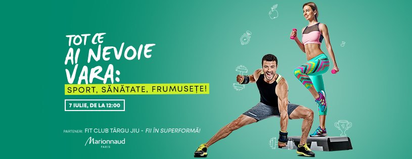 Un eveniment dedicat stilului de viață sănătos, nutriției echilibrate și exercițiilor fizice va fi organizat duminică, la orele prânzului, în incinta Shopping City Mall Târgu Jiu.,,Vara este momentul perfect să începi să ai un stil de viață sănătos și să fii în superformă! Noi îți dăm o mână de ajutor și, în parteneriat cu Fit Club Târgu Jiu, te așteptăm duminică, 7 iulie, în intervalul orar 12:00-13:00, să avem o discuție liberă despre ce înseamnă un stil de viață activ și sănătos. În plus, intenția de a alege un stil de viață sănătos îți este răsplătită cu: demonstrații de step aerobic; vouchere cadou oferite de Fit Club Târgu Jiu; ședințe de make-up gratuite și cadouri oferite de Marionnaud. Spune Da! stilului de viață sănătos, adună-ți prietenii și familia și hai să fim în superformă vara asta!”, au transmis organizatorii.