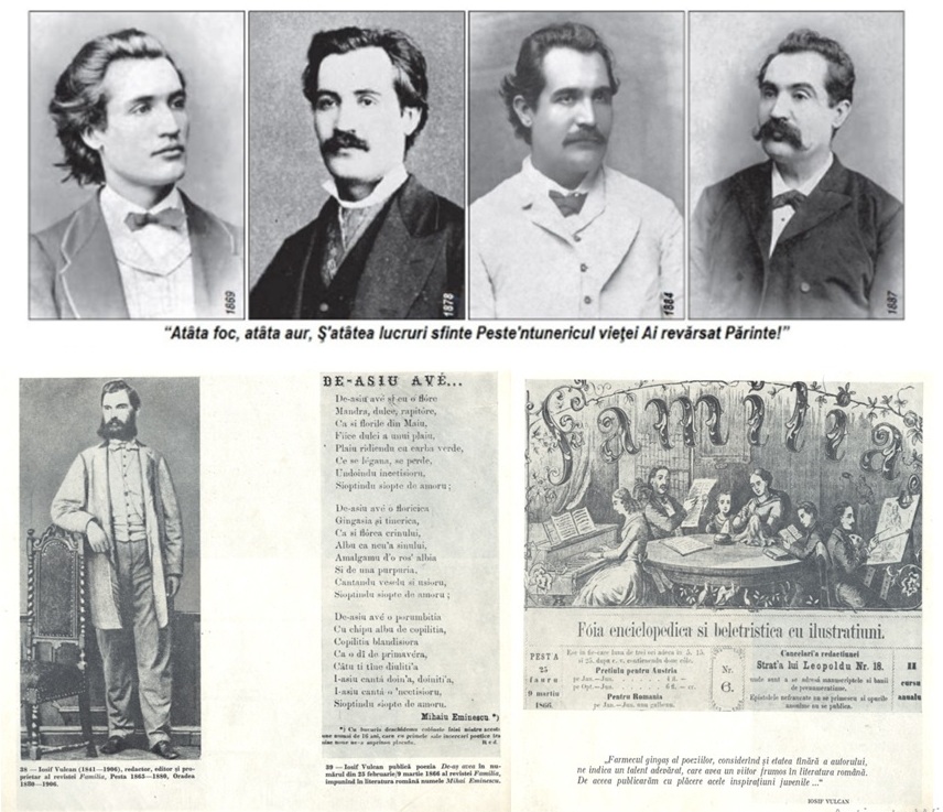 Iosif Vulcan (n. 31 martie 1841-m. 8 noiembrie 1907), Oradea, poet, prozator, dramaturg și umorist, a fost un animator și un organizator al vieții literare și culturale din Transilvania, prin reviste conduse de el: redactor, editor și proprietar al revistei ,,Familia”, Pesta(1865-1880), Oradea (1880-1906) și ,,Șezătoarea”(1875-1882), Oradea. A fost membru al Academiei Române. Scriitor umorist, a întemeiat revista ,,Umoristul”(1863-1866).