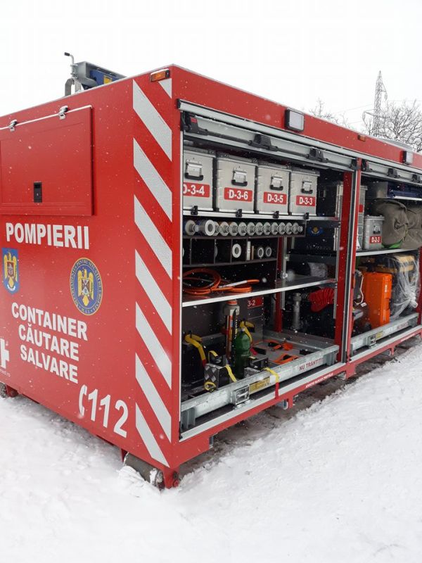 Containerul de căutare – salvare este folosit pentru intervenții de lungă durată, de descarcerare, la salvarea persoanelor prinse sub dărâmături, sau orice alt tip de solicitare, fiind dotat cu multe mijloace tehnice, de la perne, generatoare, foarfeci de tăiere auto, la fierăstraie de tăiere fier beton.