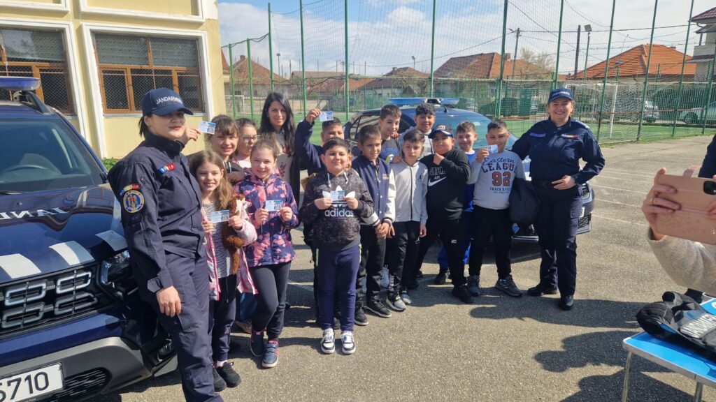 Am oferit elevilor legitimații, insigne de jandarm junior, materiale informative și am primit zâmbete și îmbrățișări care ne-au adus bucurie.