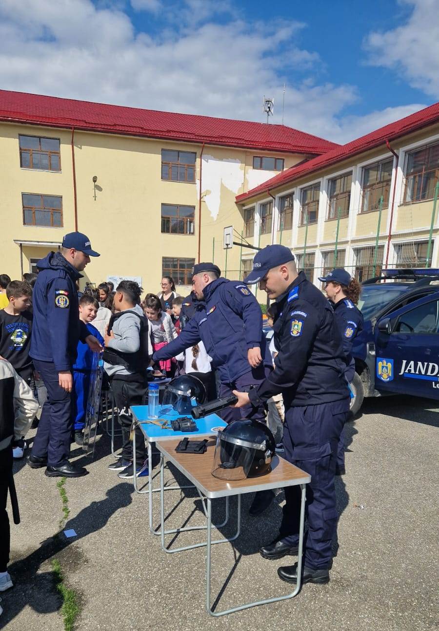 Am prezentat o parte din materialele și tehnica din dotarea jandarmilor gorjeni și autospeciale utilizate în misiuni. Totodată, au fost prezentate și condițiile pentru a urma o carieră în cadrul Jandarmeriei Române, au aflat detalii despre prevederile legale privind faptele antisociale care pot fi comise în proximitatea școlilor, cum să fie în siguranță în drumețiile montane și cum să protejeze mediul.