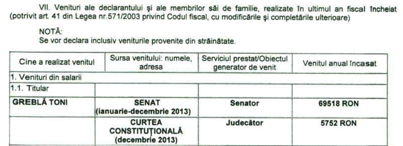 Toni Greblă declara la jumătatea anului trecut că deţine într-un cont la CEC, 70.000 de lei, dar şi că a câştigat în perioada 2013-2014 aproape 70.000 de lei din salariul de senator la care se mai adaugă încă 5800 de lei din leafa de proaspăt judecător. La veniturile familiei se mai adăugau 47.800 de lei venitul soţiei, obţinut din profesia de avocet, dar şi pensia Mihaelei Greblă de 28.800 de lei. Într-un cuvânt, fără să aibă datorii la bănci, despre soţii Greblă nu se putea spune că ar avea vreo “jenă financiară”. Cu toate acestea, avocatul Adrian Onoriu Georgescu din Prahova a avut grijă să le spună procurorilor DNA, într-un autodenunţ, că Toni Greblă avea nevoie urgentă de bani pe care îi putea obţine doar din vânzarea a 50 de capre. Mihaela Greblă susţine că banii în cauză sunt în continuare la bancă, dar şi că familia sa nu a avut “jena financiară” la care face referire denunţătorul.