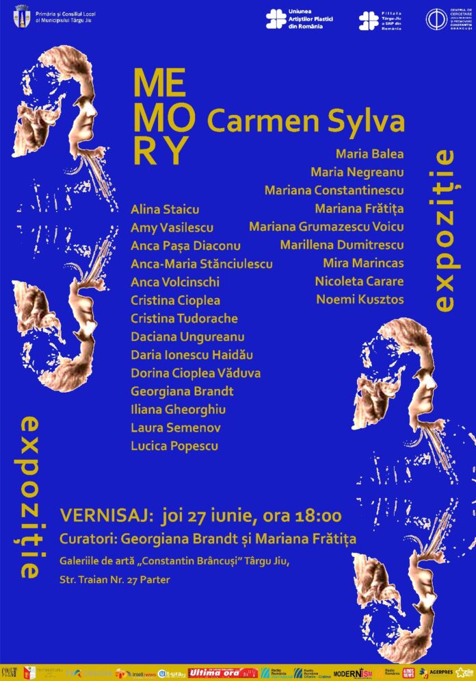 Filiala Târgu Jiu a Uniunii Artiștilor Plastici din România, în parteneriat cu Centrul de Cercetare, Documentare și Promovare ,,Constantin Brâncuşi” și Primăria Municipiului Târgu Jiu, organizează în data de 27 iunie 2024, ora 18:00, la Galeriile de Artă ,,Constantin Brâncuși” din Târgu Jiu, vernisajul expoziției naționale de arte vizuale ,,MEMORY Carmen Sylva”.