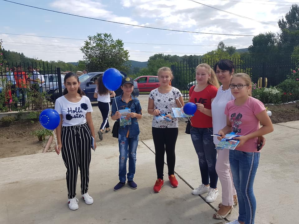 Ovidiu Ana de la Fundatia Progress a împărțit copiilor daruri pentru toate răspunsurile corecte pe care aceștia le-au dat la întrebările despre activitățile din proiectul CODE Kids. “Noi, Biblioteca Județeană „Christian Tell” Gorj și Centrul Europe Direct Gorj, am dăruit informații și simboluri europene pentru că le-am considerat potrivite pentru viitorul acestor copii minunați care, grație acestui proiect, vor avea șansa de a păși din mediul rural românesc în mediul european al inovației. De ce cred asta? Simplu: copiii fac coding în