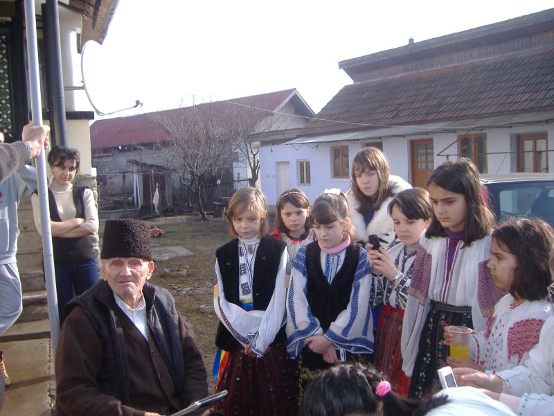 La Leleşti, un mănunchi de elevi, zglobii şi dornici să sărbătorească un VETERAN de război, s-au deplasat, de la şcoală, însoţiţi de mine, la locuinţa d-lui VOINESCU ILIE. Ca să facă din această zi o sărbătoare, elevii mei au pornit de la şcoală, îmbrăcaţi în costum naţional.