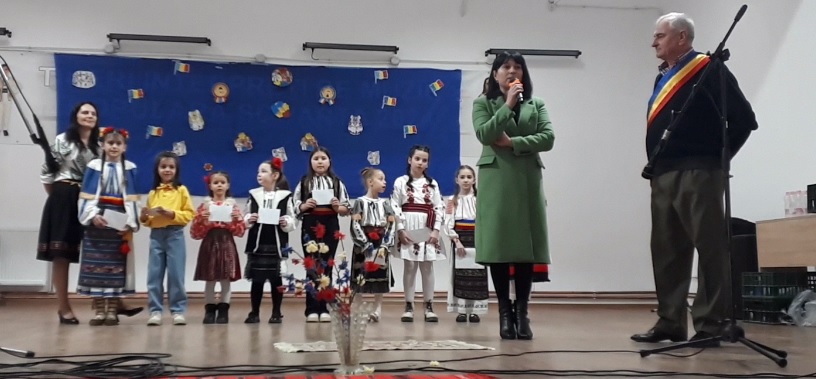 În încheiere, doamna profesor dr. Otilia Giurca – președinta juriului, a spus: „Azi am avut o sarcină foarte grea, mai grea ca la celelalte ediții ale festivalului, pentru că la această ediție copii s-au pregătit mai temeinic și au fost de la mai multe școli față de anii precedenți. Sper ca la edițiile viitoare să fie și mai mulți și foarte bine pregătiți. A fost foarte greu să-i departajăm și din punctul meu de vedere, toți au fost câștigători. Depinde de noi adulții să-i învățăm ce-nseamnă conștiință, ce-nseamnă spiritul național. Atâta timp cât un copil acceptă cu drag să poarte costumul național, să interpreteze un cântec patriotic sau să recite o poezie de inspirație patriotică, eu zic că noi toți suntem câștigători. Vă felicit cum ați reușit să vă educați acești copii minunați”.