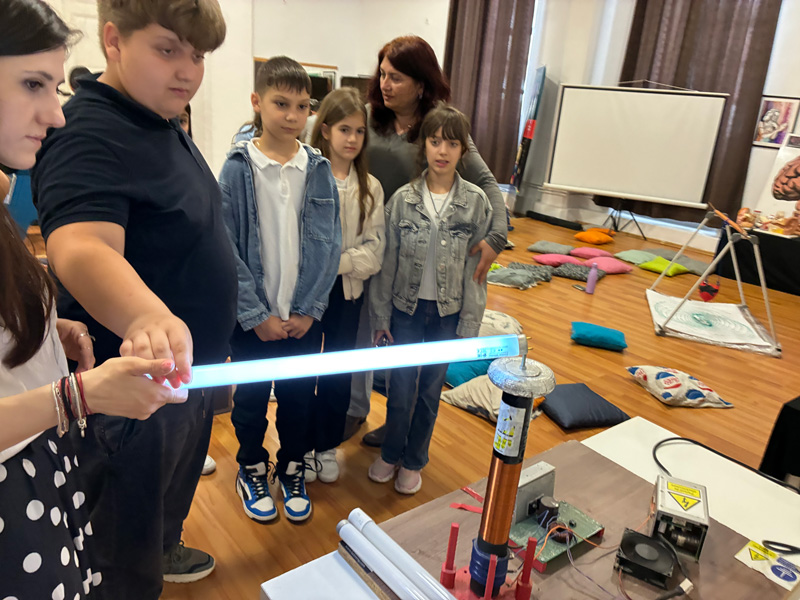 Un laborator mobil în care pot fi făcute tot felul de experimente și explicate diverse fenomene din natură este prezent zilele acestea la Târgu Jiu. Amenajat la Muzeul Județean, acesta a început deja să atragă copiii și să le stârnească interesul pentru lucrurile pe care cei mici le pot întâlni aici. În spațiul destul de limitat au loc, de regulă, maximum două clase, timpul pe care îl pot petrece copiii aici fiind de circa o oră. Primii care au participat s-au declarat extrem de încântați, iar organizatoarea laboratorului, o ieșeancă, a menționat că entuziasmul celor mici este la fel în toată țara, copiii fiind dornici să își explice unele lucruri din viața de zi cu zi. „Copiii sunt entuziaști și încântați să vadă tot felul de experimente pe care să le testeze, să interacționeze cu tot felul de joculețe, să pună mâna pe tot felul instalații, descoperă diverse lucruri și se bucură că descoperă lucruri care sunt simple în realitatea de zi cu zi, iar aici sunt într-o formă mai complexă, specifică unui laborator. Entuziasmul copiilor este același în toate orașele din țară și este cu atât mai mare cu cât copiii sunt mai mici. Apare o oarecare reticență la cei de vârstă mai mare, dar bucuria de a descoperi cât mai mult se vede la toate vârstele. Înțeleg foarte multe lucruri chiar de la vârste foarte mici, chiar dacă e vorba de principii complexe din fizică. Ei reușesc să le înțeleagă de la 5-6 ani. Sunt lucruri practice care îi ajută să înțeleagă prin observație, să își pună întrebări despre cum se întâmplă ceva, de ce se întâmplă și să le explice logic. Cred că cel mai mare beneficiu al laboratorului este că îi ajută pe copii să vadă lucruri și să le înțeleagă logic, pe baza observațiilor pe care le fac ei”, a precizat Camelia Cojan, reprezentanta laboratorului mobil, prezent până la sfârșitul săptămânii viitoare la muzeu.